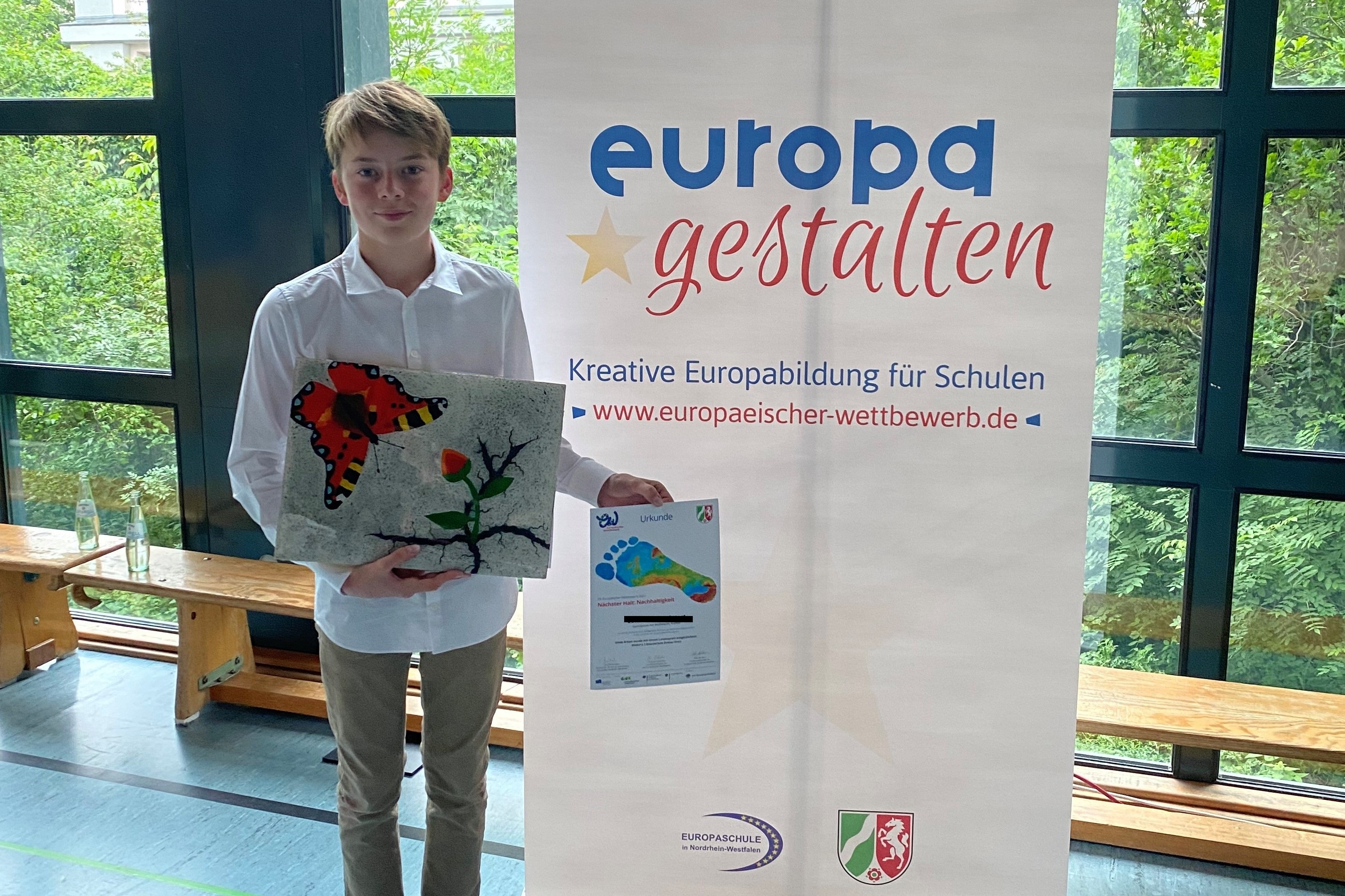 Die besten Beiträge wurden nun unter Anwesenheit von Ministerin für Schule und Bildung des Landes Nordrhein-Westfalen Yvonne Gebauer und Ministerialrätin Eva-Maria Mikat im Rahmen einer Feierstunde in Düsseldorf prämiert. In ihrer Ansprache merkte Frau Gebauer eindringlich an, wie wichtig es gerade in der aktuellen Situation sei, dass die europäische Gemeinschaft zusammenstehe und die Schülerinnen und Schüler mit Ihrem Einsatz im europäischen Wettbewerb auch zeigten, wie wichtig die Zukunft Europas sei.