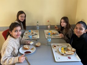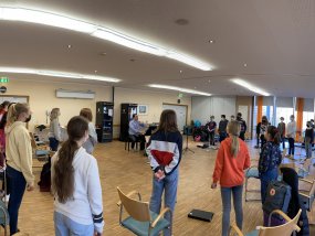 Am Montagmorgen, den 21.3.2022, haben wir uns alle am Grotenburg Parkplatz um 8:45 Uhr getroffen und auf unseren Bus gewartet. Wir alle waren sehr aufgeregt. Um 9 Uhr kam der „coole“ Busfahrer Otto und sein genauso cooler Bus. Otto und seine Tochter nahmen unser Gepäck und wir sind in den Bus eingestiegen. Die Fahrt war lustig, jeder war gespannt, wie unsere Jugendherberge wohl aussah. Als wir angekommen sind, sahen wir die Jugendherberge, welche sehr groß war, direkt in der Nähe war auch ein See Als wir eingecheckt hatten, ging jeder in sein Zimmer. Wir sind aber nicht lange dageblieben; nachdem wir unsere Sachen eingepackt haben, ging die Probe um 11:30 Uhr los. Wir haben neue Lieder kennengelernt und direkt angefangen zu proben. Nach dem Mittagessen sind wir spazieren gegangen. Wir sind zu mehreren Mini-Spielplätzen gegangen, die in der Nähe des Sees sind.