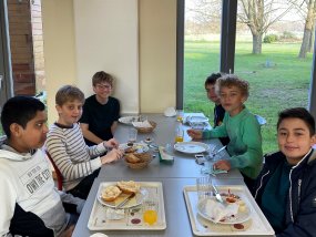 Am nächsten Tag sind wir alle früh aufgestanden und haben angefangen, unsere Zimmer zu putzen und unsere Sachen einzupacken. Um 8:45 Uhr haben wir uns getestet und ein bisschen geprobt. Um 10 Uhr kam der Bus und wir sind nach Hause gefahren. Als wir ankamen, waren viele Eltern schon da und froh, ihre Kinder wieder zu sehen.