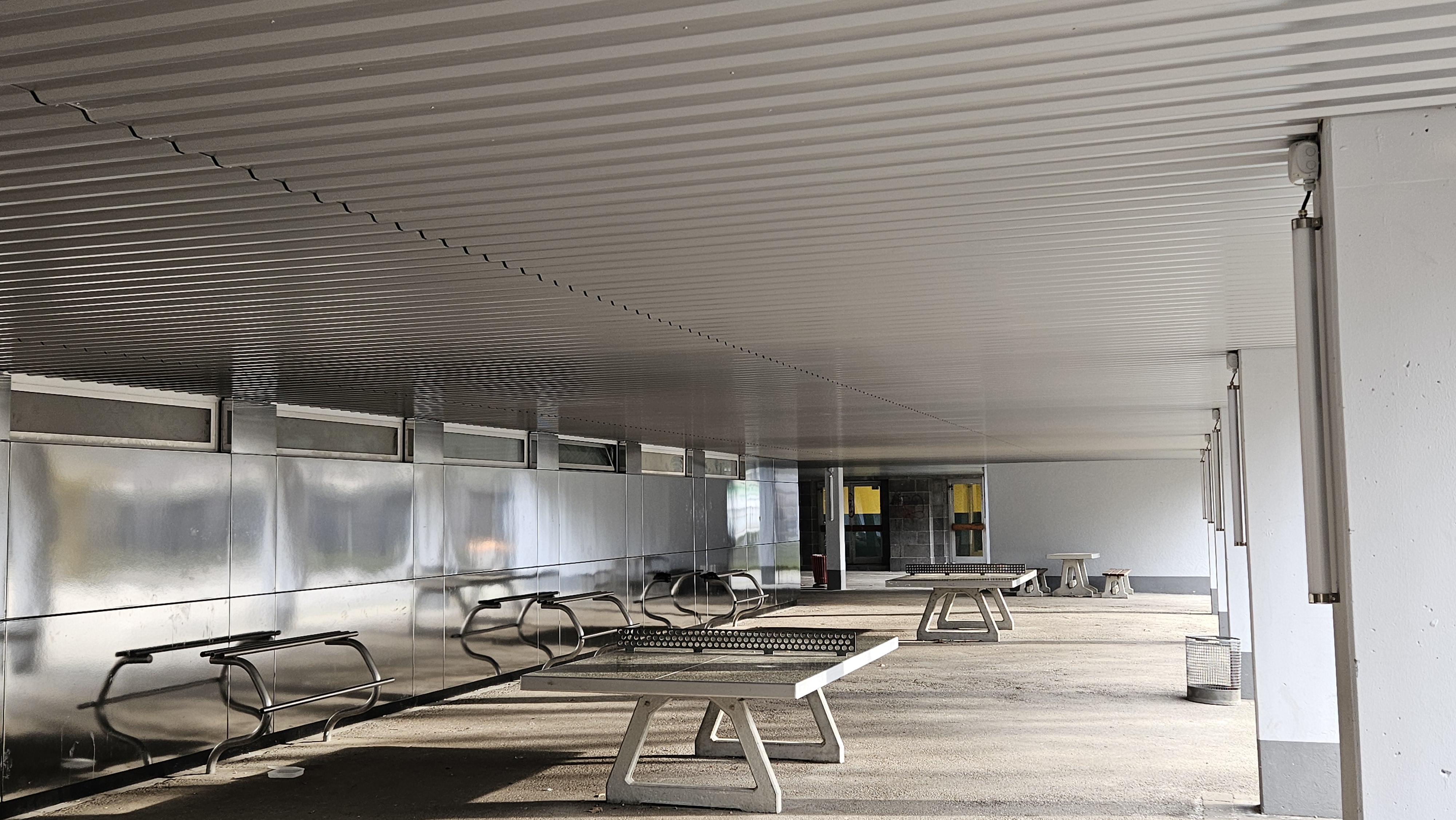 Ein neues Gesicht: Die Fassade des Nordflügels erstrahlt nun in neuem Glanz. Die moderne Gestaltung wertet das gesamte Schulgebäude optisch auf und trägt zu einem einladenden Erscheinungsbild bei.