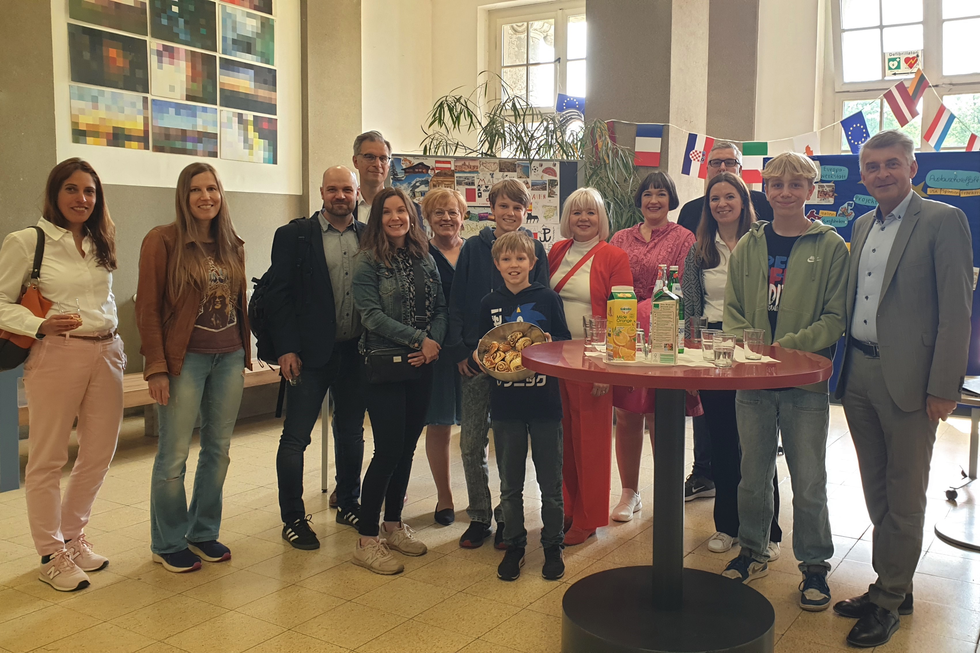 Am 23. Mai 2023 besuchte eine Delegation aus der Schulverwaltung der finnischen Stadt Tampere das Moltke, um einen Einblick in die Schularbeit einer weiterführenden Schule in Deutschland zu bekommen. Nach einer kurzen Begrüßung durch Herrn Dr. Zöllner im Foyer der ersten Etage teilte sich die Gruppe aus Mitarbeitern der Stadt Krefeld und Tampere zur Unterrichtshospitation auf: Musik und Physik standen auf dem Programm – ein Dank an Frau kleine Schlarmann und Herrn Lindner, die spontan bereit waren, Gäste in ihrem Unterricht zu begrüßen! Im Anschluss an die Hospitation ließen sich unsere Gäste, begeistert von der Architektur des Altbaus, die Schule und den Schulhof zeigen. Dass der Besuch für unsere Gäste aus Finnland zu einem großartigen Ereignis wurde, lag vor allem an der Tatsache, dass sich auf unserer Europaschule Schüler befinden, die Finnisch sprechen: Mitja (5a), Florian (7a) und Elia (9c) dolmetschten ohne Schwierigkeiten. Und wenn es dann doch einmal mit einem Wort nicht klappen wollte, sprang Frau Nordling ein, die den richtigen Ausdruck parat hatte. So wurde auch die Präsentation unserer Schule durch Frau Zühlke bei Kaffee, Kuchen und Korvapuusti in heiterer und schöner Atmosphäre zu regem Austausch genutzt und weitere Gespräche über eine für beide Seiten nützliche Zusammenarbeit des Moltkes mit Schulen aus Tampere vereinbart.