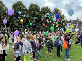 Mit dem ebenfalls traditionellen Ballonwettbewerb endete der Einschulungsvormittag – jetzt sind alle gespannt, welcher Ballon den weitesten Weg zurücklegen wird.