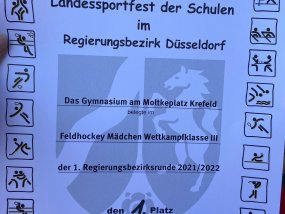 Die Mädchen unter Trainerin Nina Lemmen taten sich im ersten Spiel nach einer 3:1 Führung gegen die Marienschule aus Mönchengladbach etwas schwer und kassierten kurz vor Schluss noch den 3:3 Ausgleich. Gegen das Gymnasium Gartenstraße, ebenfalls aus Mönchengladbach, musste nun ein hoher Sieg her. Dies schafften unsere Moltkemädels und gewannen deutlich mit 14:1. Somit war man Tabellenerster und Sieger des Turniers.