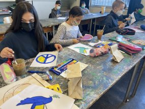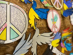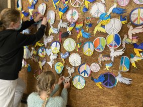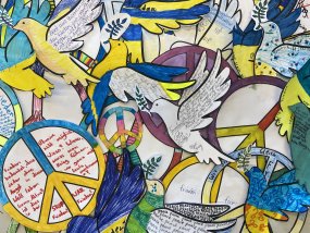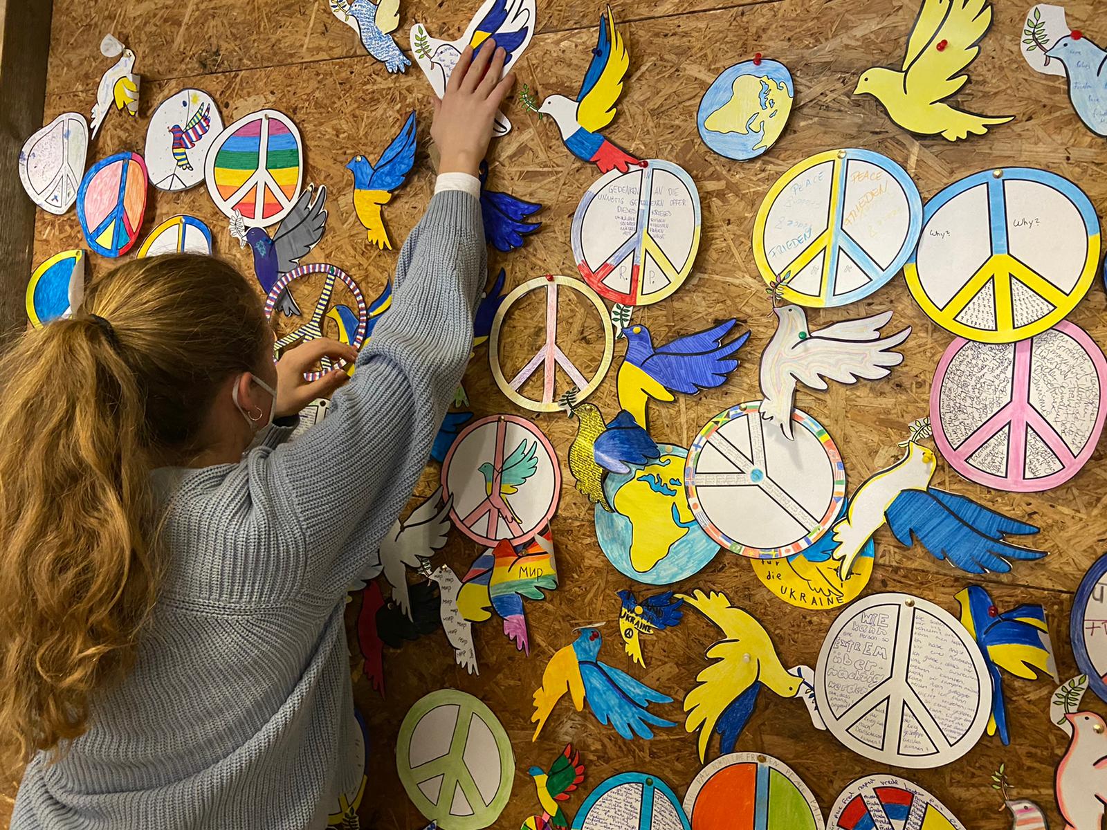 Schülerinnen und Schüler aus allen Jahrgangsstufen haben in den letzten Tagen Friedenszeichen gestaltet, welche sehr präsent im Treppenaufgang zu einem Gesamtwerk vereint wurden, um die große Solidarität mit den Menschen der Ukraine auszudrücken. Ferner bereitet die SV aufgrund des spürbar großen Wunsches der Schülerinnen und Schüler nach Aufklärung eine Klassenlehrerstunde vor, um über den Krieg, aber auch über die Berichterstattung und seriöse Informationsquellen zu informieren.