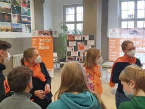 Am Abend des 25.11.2021 wurde das Moltke Gymnasium orange angestrahlt. Der Grund war der weltweite “Orange Day” organisiert von Zonta.