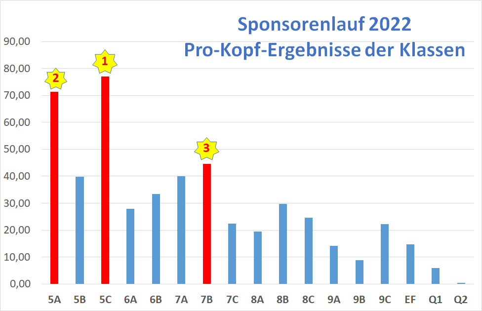Die erstaunliche Summe von 15.150,87 Euro ist von unseren Schülerinnen und Schülern beim diesjährigen Sponsorenlauf gesammelt worden. Allen Spendern und Läufern sagen wir ein riesiges Dankeschön!! Die drei erfolgreichsten Klassen waren die 5C, die 5A und die 7B, die einen Preis für ihr Engagement erhalten. Super! Das Geld wird zu 50% für unsere Schule und zu 50% für soziale Zwecke eingesetzt. Unsere soziale Initiative Moltke für Afrika und die Krefelder Kindertafel werden unter den Empfängern sein. Über die genaue Verwendung entscheidet in den nächsten Tagen der Eilausschuss der Schulkonferenz. Herzlichen Dank an alle, die zum reibungslosen Ablauf und zum Gelingen beigetragen haben!