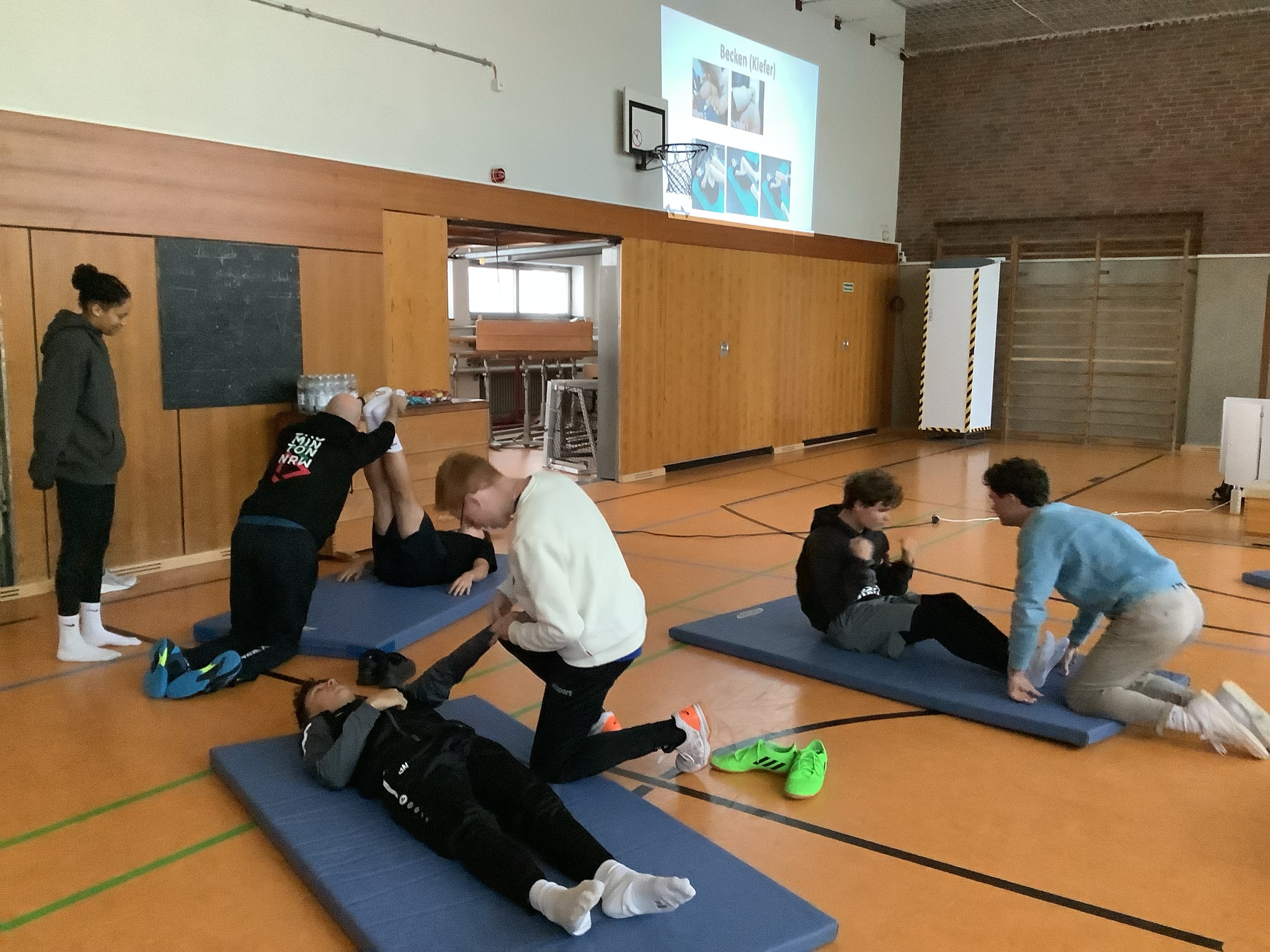 Als Partnerschule des Leistungssports begrüßte das Moltke zusammen mit Vertretern des Netzwerks für Krefelder Leistungssportler*innen am 17.10.2023 Schülerinnen und Schüler aus verschiedenen Krefelder Schulen zu einem Workshop zum Thema „Mobilität“. Als Referent konnte der Sportdirektor des Badminton-Landesverbandes Marcus Busch „Buschi“ gewonnen werden. Durch praxisnahe Beispiele aus dem Bereich Badminton erfuhren die Leistungssportler*innen am eigenen Körper, wie wichtig die Mobilität der Gelenke für jede Sportart ist. Zudem wurden die praktischen Einheiten mit theoretischem Hintergrundwissen verknüpft, so dass vor allem die Sportabiturientinnen und -abiturienten sehr von der Veranstaltung profitierten. „Das war echt gut und vor allem mal eine andere Perspektive auf den Sport“, lobte Jakob Milla aus der Q1.