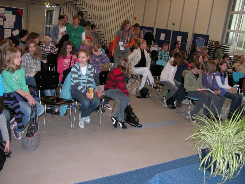 Im ersten Durchgang, dem Lesen aus dem selbst gewählten Buch, lag „unsere“ Hanna noch gleichauf mit dem Spitzentrio unter den 16 Teilnehmern. Leider konnte sie im Fremdentscheid ihren sehr guten 1. Durchgang nicht wiederholen. Gleichwohl reichte es zu einem mehr als ehrenvollen dritten Platz, wobei gesagt werden muss, dass die Erstplazierte eine phantastische Leistung bot. Hanna aber braucht sich nicht zu verstecken, sie bot eine sehr, sehr schöne Leistung und hatte den Titel „Siegerin der – unsrigen – Herzen“ sicher; für ihren begleitenden Deutschlehrer war es ein kleiner Trost, dass die Siegerin aus Düsseldorf vom `Görres` kam. Gratulation an Hanna: Sie hat die Farben des MOLTKE und der Stadt Krefeld würdig vertreten!