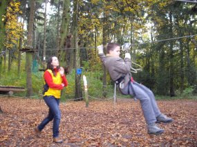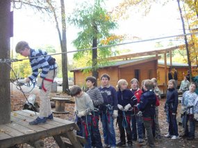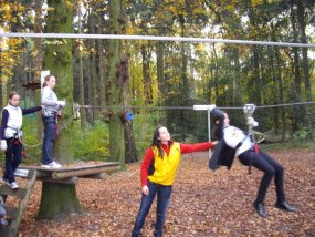 Am 28. Oktober fuhr die Klasse 6b nach der Schule mit einem bestellten Bus in den Kletterwald Süchteln. Nach einer halben Stunde Fahrt mussten die Schüler noch 20 Minuten durch den Wald gehen, bis sie bei dem Kletterwald ankamen. Nach einer Einleitung ging es endlich los! Die Schüler mussten erst einen kleinen Einsteigerparcours vorklettern und durften dann zwischen Fitnessparcours 2 und 3 wählen. Danach konnten sie Abenteuer 1 oder 2 klettern. Einige haben sich auch an den Risikoparcours gewagt. Nach 3 Stunden Klettern ging es dann wieder nach Hause.
