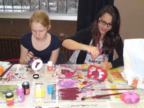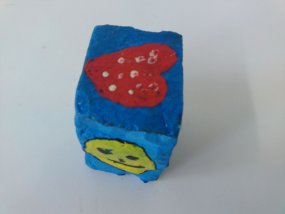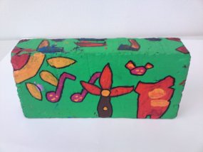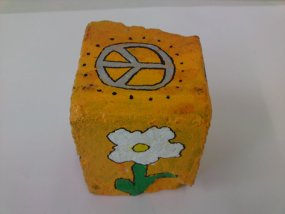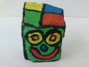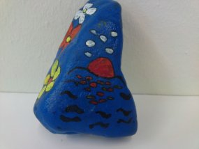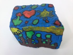 Die Schülerinnen und Schüler der Klasse 6b bemalten im Kunstunterricht, inspiriert von Motiven des amerikanischen  Künstlers James Rizzi, Pflastersteine.