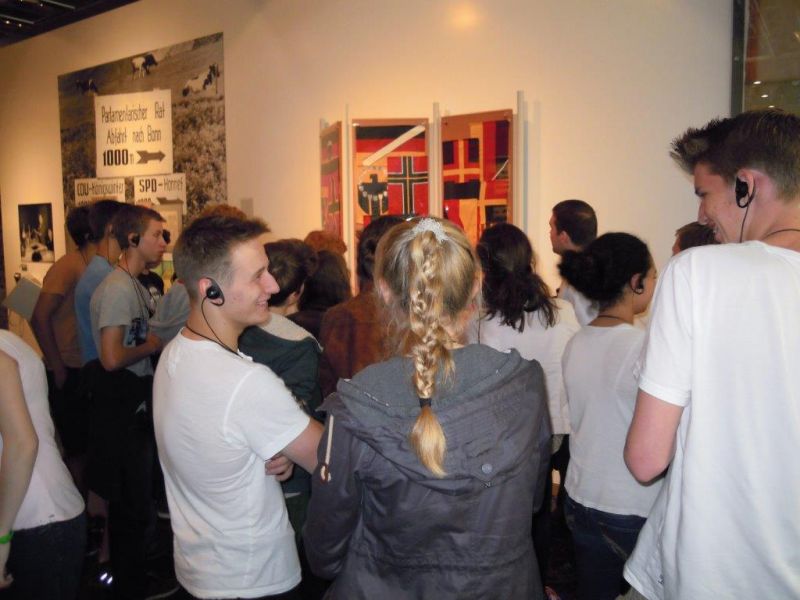 Am Mittwoch, dem 18.6.2014, war es mal wieder so weit. Die mittlerweile zum Schulprogramm gehörende Exkursion der 9. Klassen zum Haus der Geschichte in Bonn fand statt, und so machten sich um 8.30 Uhr 87 Neuntklässler auf den Weg, um in einer 1 ½-stündigen Führung in die Grundlagen der bundesrepublikanischen Geschichte eingeführt zu werden. Ihrem sehr angenehmen Verhalten vor Ort galt das Lob der begleitenden Lehrer, Herr Wilm, Herr Pelzer sowie Herr van Randenborgh, den guten Vorkenntnissen das der sie durch die Ausstellung führenden Museumsmitarbeiter. Obwohl das Museum vor Besuchern schier zu bersten schien, konnten sich die vier Gruppen vor Ort gut bewegen und erhielten vor allem eine an der Praxis mit den Hunderten von Original-Exponaten orientierte Führung. Immer wieder kam es zu überraschten Einblicken in unsere jüngste Geschichte, so etwa, wenn die Jungs ein Goggomobil bestaunten, während die Mädchen erstaunt waren, dass sich aus einem ausrangierten Stahlhelm sehr wohl eine Salatschüssel herstellen ließ. Alles in allem genossen unsere SchülerInnen die immer wieder sehenswerte und mit neuen Ausstellungsstücken bestückte Geschichtsmeile und zeigten sich sichtlich beeindruckt über den nun wirklich geschichtsträchtigen Werdegang unserer “jungen“ 66-jährigen Demokratie. Gegen 14.30 Uhr erreichte der Tross schließlich wieder wohlbehalten Krefelder Boden. Ein großer Dank geht an Frau Schumacher-Hirt für ihre Organisation mit gleichzeitig besten Genesungswünschen. Auf ein Neues dann in 2015!