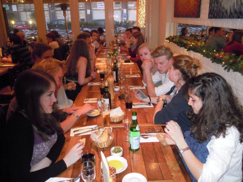 Frohgelaunt u n d bester Stimmung trafen sich die 17 Mitglieder des Deutsch-LK 1 gemeinsam mit ihrem Kurslehrer, Herrn van Randenborgh, am Dienstagabend, dem 27.3.2012, zum Abschiedsessen beim "Italiener" auf dem Großmarkt. Dabei wurde die gut gefüllte Kurskasse, über deren Zustandekommen sich der Mantel des Schweigens ausbreitet, in die Getränke investiert, während jeder sich „sein“ Gericht auswählte, was allen ausgezeichnet mundete. Der Lehrer erhielt zu seiner Überraschung ein selbst gebasteltes Memory über den Kurs, was er mit einigen Hilfen – gerade so wie im Unterricht, nur mit umgekehrten Vorzeichen – meisterte. Kaum hatte das Essen begonnen, wurden schon die ersten schulischen Anekdoten aus den immerhin noch neun Moltke-Jahren hervorgezogen und teils zur allgemeinen Erheiterung zum Besten gegeben. Nicht immer, aber doch meistens, funktionierten dabei die Ohren des anwesenden Lehrers. Zu seiner großen Freude hatten die SchülerInnen jedenfalls ihr morgendliches Motto „think pink“, das denn doch auf Dauer den Augen zum Schmerz geraten wäre, gegen eine dem Anlass angemessene Abendgarderobe ausgewechselt. Gegen 22.30 Uhr, also zu einer gesitteten Zeit, löste sich der Kreis mit einem leicht wehmütigen Rückblick auf die vergangenen zwei Jahre auf, denn am nächsten Tag stand ja schon das Motto „Piraten“ an und entern lassen wollte sich der Kurslehrer nun doch nicht. Allen Abiturienten dieses Jahrgangs wünschen wir auf diesem Weg ein gutes Bestehen ihres bevorstehenden Abiturs.