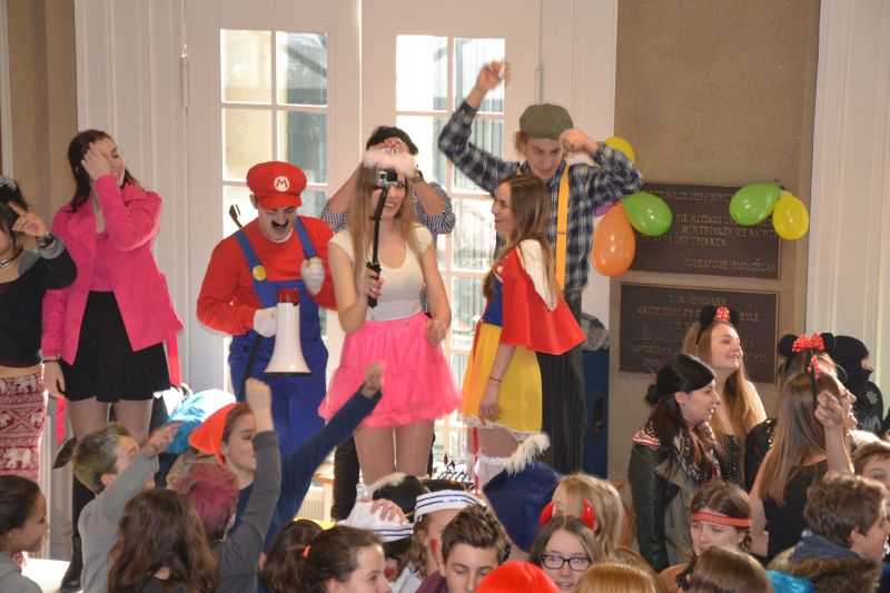 Das diesjährige Krefelder Karnevalsmotto passte eins zu eins auch zu unserer Schule: Die Q1 schaffte es eine lustige Karnevalsparty für große und kleine Schüler sowie für die Lehrer zu organisieren. Bei guter Musik schmeckten allen die leckeren Berliner von der Bäckerei Sommer umso besser. Besonderen Spaß hatte auch die Unterstufe bei einer auf sie zugeschnittenen Party in der Aula, wo die besten Kostümen miteinander konkurrierten und sich die tollsten Talente bei einer Talentshow präsentieren konnten. Die stolzen Gewinner konnten im Anschluss mit einem „Futter-Gutschein“ zum Büdchen abziehen. Wir wünschen der kommenden Q1 ebenso eine erfolgreiche Karnevalsparty im nächsten Jahr.