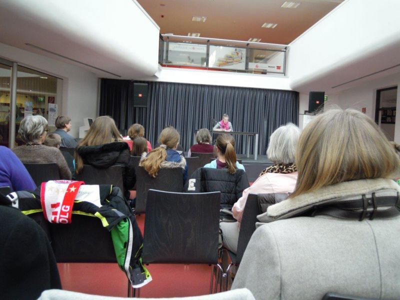 Es bedurfte erst eines Stichentscheids, um den ersten Platz beim diesjährigen Vorlesewettbewerb auf der städtischen Ebene zu entscheiden, und auch dessen Ausgang verlief ganz knapp, aber immerhin konnte „unsere“ Anna sich hier auf einem sehr ehrenvollen 2. Platz behaupten, was man so im Vorfeld vielleicht gar nicht für möglich gehalten hätte. Schon im eigentlichen Durchlauf der 17 Kandidaten hatte sie ihre Klasse bewiesen und mit einer sehr schönen sonoren Stimme aus Maryrose Woods „Das Geheimnis von Ashton Place“ vorgelesen. Die anwesende MOLTKE-Gemeinde war sich denn auch sicher, dass Anna gute Chancen habe, sich unter die ersten Drei zu platzieren. Das sah die sechsköpfige Jury wohl auch so, und so sollte ein Stichentscheid über den Stadtsieger entscheiden. Während die Moltkeaner hier Anna mit einem hauchdünnen Vorsprung sahen – sie las hier die Fremdlektüre „Das Geheimnis von Bahnsteig 13“ von Eva Ebbotsson -, kam die Jury offensichtlich zu einem gegenläufigen Urteil, wozu wir der Siegerin gratulieren, aber zu Recht sehr stolz auf „unsere“ Anna sein dürfen, die die MOLTKE-Farben auf beeindruckende Art und Weise vertreten hat: HERZLICHEN GLÜCKWUNSCH !