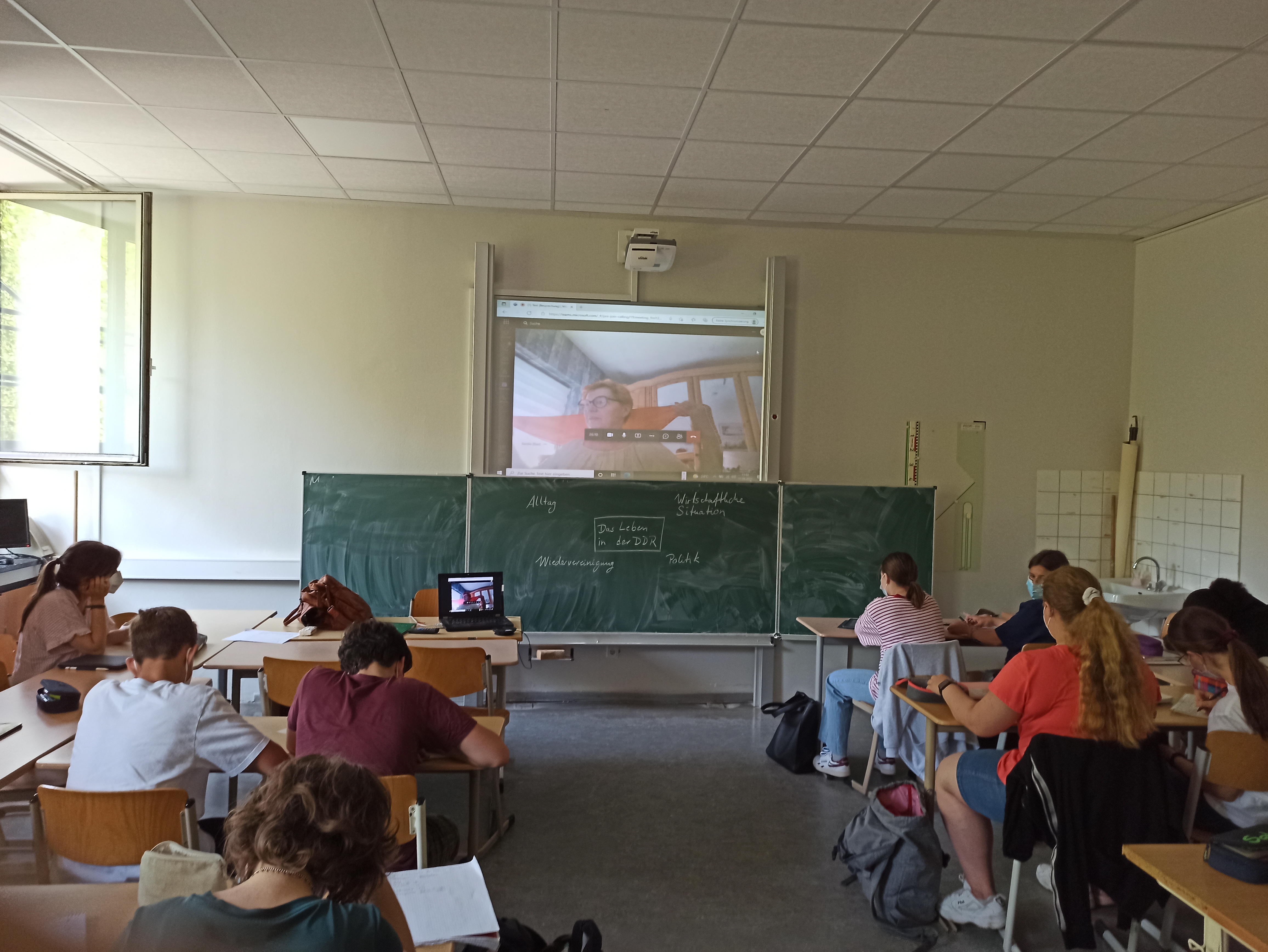 Am Freitag dem 11.6.2021 hatte die Klasse 9a im Geschichtsunterricht von Herrn Birkenbach Besuch von einer Zeitzeugin aus der Zeit der DDR. Kerstin Scharff lebte während der DDR-Zeit und konnte uns offene Fragen beantworten.