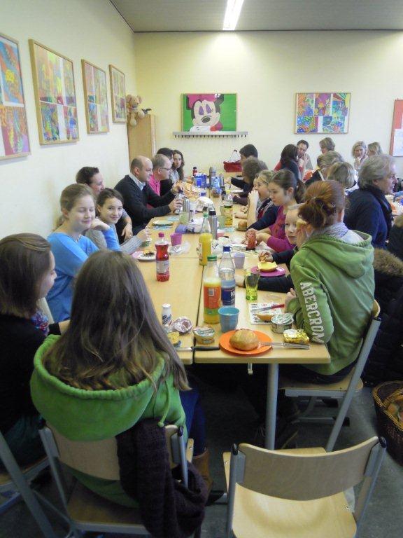 wünschen die Schüler und Schülerinnen der Klasse 7c sowie ihre Eltern allen Mitgliedern der Moltke-Familie. Am Samstag trafen Erstere sich zum obligatorischen Neujahrsfrühstück und „klönten“ in „ihrem“ Klassenraum ca. 1 ½ Stunden über Gott und die Welt. An vorderster Stelle der Wünsche für 2013 standen Gesundheit und das Erreichen des Klassenziels. Ansonsten war die Stimmung ausgelassen-heiter, kein Wunder, hatte sich doch auch die in den letzten Wochen nur selten gesehene Sonne wieder einmal blicken lassen, und so bot der sonnig-helle Raum 124 ein angenehmes Ambiente für die ca. 60 Gäste.