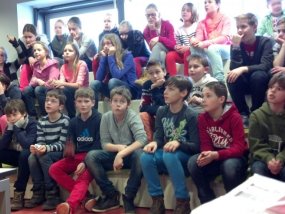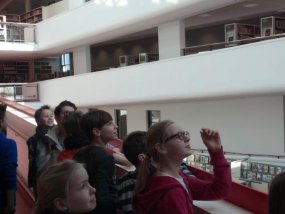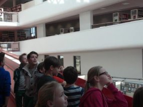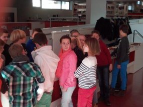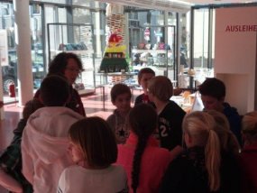 Die Schülerinnen und Schüler der Klasse 6b besuchten am Montagvormittag, begleitet von ihrem Klassenlehrer, Herrn Arlt, und ihrer Geschichtslehrerin, Frau Rasch, sowie der Tutorin Nora, die Mediothek der Stadt Krefeld. Schon auf dem Hinweg herrschte bei strahlendem Sonnenschein gute Stimmung. In der Mediothek angekommen wurde die Klasse nach einem kurzen Einführungsvortrag in zwei Gruppen aufgeteilt. Je eine Gruppe erhielt eine informationsreiche Führung durch die Räumlichkeiten der Mediothek, während die andere Gruppe in der Kinder- und Jugendabteilung ein Quiz über die Mediothek und die unterschiedlichen dort zur Ausleihe verfügbaren Medien bearbeitete. Zum Schluss erhielt jede/r einen „Schnupper-Ausweis“ für die Mediothek, mit dem die Mitgliedschaft für drei Monate kostenlos ist. Am Mittag traf die Klasse wohlbehalten wieder am Schulgebäude ein.