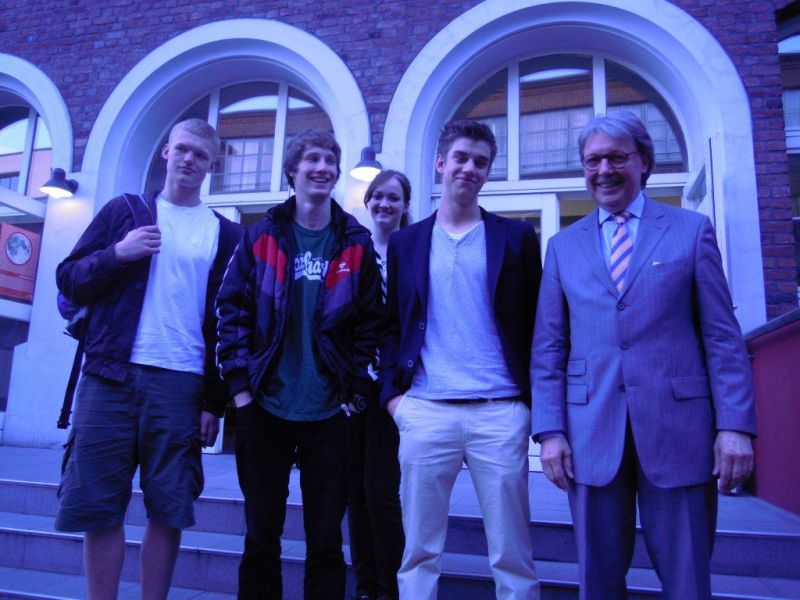 Es waren nicht viele aus dem Deutsch-LK, die dem Impuls ihres Lehrers, Herrn van Randenborgh, gefolgt waren, um sich am 9.5.2012 die Aufführung von Büchners „Woyzeck“ am hiesigen Kresch-Theater anzusehen, aber sie brauchten ihr Kommen in keiner Weise zu bereuen. Als Grundlage dienen dem fünfköpfigen Ensemble alle vier Handschriften, und das daraus gewonnene Konstrukt brachten die Schauspieler in einer 75minütigen Aufführung unter der Regie des ehemaligen Moltkeaners Franz Mestre auf beeindruckende Art und Weise auf die Bretter, die einem Ondit zufolge die Welt bedeuten. Die quasi gänzlich fehlende Distanz zwischen Auditorium und Bühne ist just für eine Inszenierung des „Woyzeck“ wie geschaffen, da so das unter-die-Haut-gehende Dramenfragment auch nicht den letzten Zuschauer unangesprochen, ja ungerührt lässt. Die Inszenierung ist durchaus modern zu nennen, ohne dabei die Textgrundlage aus den Augen zu verlieren, und erkennbar wird, wie die Schauspieler/-innen an die Grenzen ihrer körperlichen Kraft gehen. Eine grundsolide und beeindruckende Inszenierung, die nun vielleicht auch noch den Rest des Kurses animieren wird, dem im Repertoire des Hauses verbleibenden Stück in der 2. Hälfte des Jahres einen Besuch abzustatten – lohnenswert wäre es allemal.