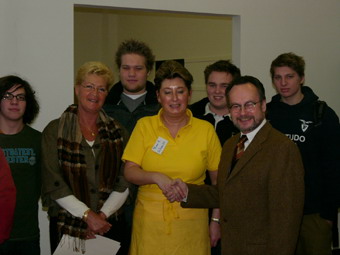 Frau Schmitz (auf dem Foto) wird von Schulleiter Herrn Neumann und seiner Stellvertreterin Frau Aalam -Behr herzlich begrüßt in ihren neu eingerichteten Räumen. Sie bietet ein reichhaltiges Angebot an gesunden Kleinigkeiten und ein gutes selbst gekochtes Mittagessen an, da auch die Schüler im Gymnasium durch die Einführung des G8 (Gymnasium in 8 Jahren) bis in den Nachmittag hinein Unterricht haben. Aber nicht nur die konventionellen Fächer werden am Nachmittag angeboten , sondern auch eine Reihe an Arbeitsgemeinschaften wie eine ChemieAG , eine Schulsanitäter Ausbildung oder ein Cambridge Proficiency Course, Handball und Fußball sowie an 4 Tagen eine Hausaufgabenbetreuung haben ein Angebot an Speisen erforderlich gemacht und so wird sich Frau Schmitz auf reißende Abnehmer freuen können.