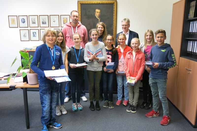 Je nach Abschneiden im Jahrgang, konnten viele Teilnehmer sich über Lektüren, Vokabelhefte, comics, London guides etc. für ihre guten Leistungen freuen. Die fünf Besten einer Jahrgangsstufe erhielten jedoch ihre Urkunden und Preise im Rahmen einer Siegerehrung durch Herrn Dr. Rademacher überreicht. Die Erstplatzierten erhielten außerdem einen Gutschein der Meyerschen Buchhandlung, gesponsert von der Schulleitung. Ganz herzlich gratulieren wir: