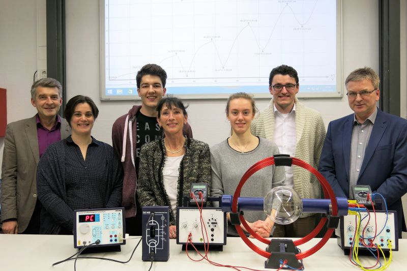 Am Dienstag, den 30.01.2018 übergab Frau Dr. Heide als Vertreterin der Fritz Henkel Stiftung der Physik-Fachschaft des Gymnasiums am Moltkeplatz ein neues computergestütztes Messwertsystem, mit dem Experimente zur Existenz von Energieniveaus in Atomen und zur Quantenphysik durchgeführt werden können. Die Spende ermöglicht zusätzliche mediengestützte Unterrichtsformate v.a. im Oberstufenunterricht. Das Fach Physik wird am Gymnasium am Moltkeplatz von einem Großteil der Schülerinnen und Schüler gewählt und auch als Leistungskurs unterrichtet; entsprechend groß war die Begeisterung, als Kursmitglieder aus dem diesjährigen Abiturjahrgang im Rahmen der Übergabe die neuen Möglichkeiten demonstrierten.
