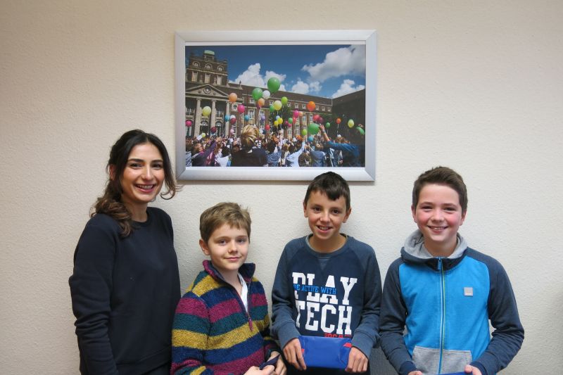 ……sind in diesem Jahr Linus und Henrik aus der 5c und Henri aus der 5b! Sie ließen zu ihrer Einschulungsfeier zusammen mit allen Fünftklässlern ihre Luftballons – voller Hoffnung auf eine weite Flugstrecke und Rückmeldung der Finder – hochsteigen. Unser Sieger Linus bekam eine Antwortkarte aus Hamburg, der zweitplatzierte Henrik aus Espelkamp-Fiestel (ca.182 km) und der dritte Gewinner Henri aus Harsewinkel (133 km). Diese drei Gewinner wurden schließlich am Montag, dem 20.11.2017, mit Büchergutscheinen prämiert!