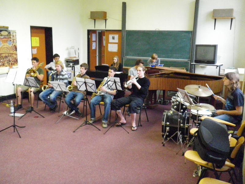 Kurz vor dem verlängertem Wochenende fand am Abend des 2. Juni der Jazz-Workshop mit Tobias Reisige (Köln) und der Jazz-Combo am Moltke statt. Zwei Stunden lang wurde an Improvisation und Interpretation einiger Jazz-Standards gearbeitet. Aber nicht nur die Mitglieder der Combo spielten, auch die Zuhörer wurden mal schnell zu einer Bossa-Rhythmus-Gruppe formiert, um die Interpretation des Blue Bossas zu komplettieren.