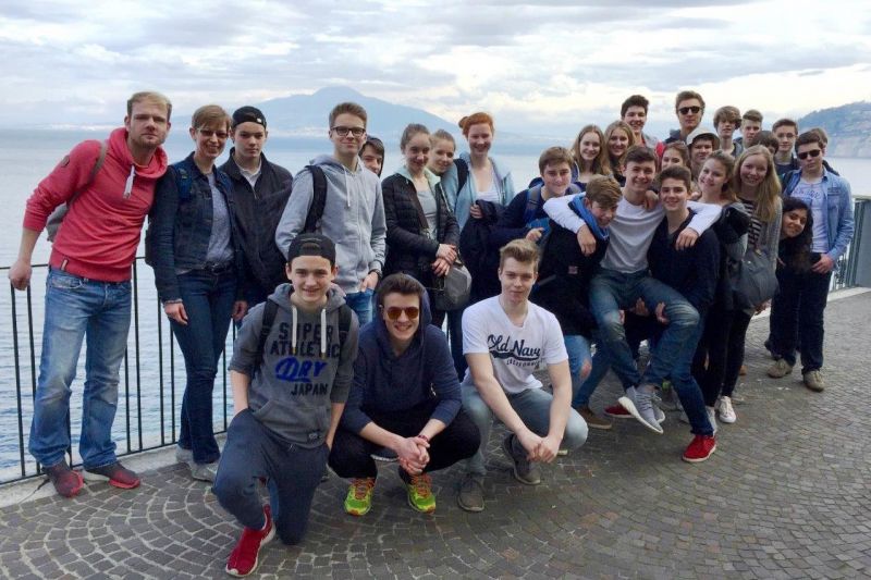 Die Exkursion der Lateinkurse der Klasse 10 nach Sorrent, Italien, begann am 13. März 2016, einem Sonntagmorgen, um 8:45 Uhr am Flughafen Düsseldorf. Nach einem zweistündigen Flug nach Neapel fuhren wir am frühen Nachmittag per Bus in unser Feriendorf „Nube d´argento“, welches einen traumhaften Blick über den Golf von Neapel und den imposanten Vulkan Vesuv bot. Nach der Ankunft wurden die Zimmer verteilt und alle Schüler hatten die Möglichkeit, sich einen ersten Eindruck von Sorrent zu verschaffen und sich für die kommenden Tage mit Lebensmitteln einzudecken.