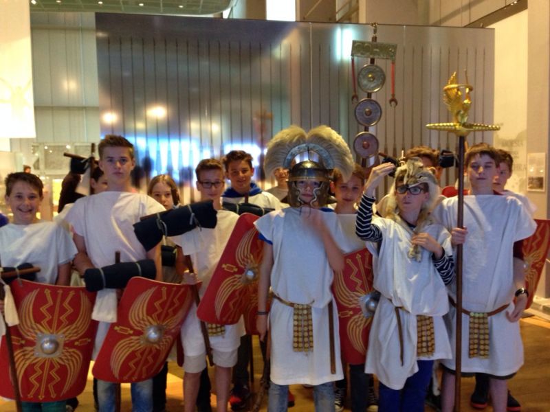 Von wegen lau! Ganz schön schuften mussten die römischen Soldaten, wie auch die Schüler und Schülerinnen der 6a und b sowie der beiden Lateinkurse in der 7 erfahren durften. Bis zu 45kg Gepäck schleppten sie auf ihren Tagesmärschen von bis zu 30 km, und war man am Lagerplatz angekommen, ging die Schufterei erst richtig los: Gräben ausheben, Palisadenzäune errichten, Zelte aufbauen, Rüstung putzen und Essen zubereiten hieß es dann. Da blieb nur wenig Zeit für Würfelspiele etc., bevor man sich geschafft in sein 3x3m großes und 1,20m hohes Zelt, das man sich mit sieben weiteren Legionären teilen musste, schlafen legte. Und so machten sich auch unsere Schüler in Legionärsrüstung auf den Marsch durch das Römermuseum in Xanten, um die einzelnen Stationen des Legionärslebens zu erkunden. Nach einer Rallye durch den Park, deren Sieger sich mit Süßigkeiten stärken durften, ließen auch wir den Tag mit Spielen und Hüpfburg ausklingen, bevor wir uns geschafft wie die Legionäre mit dem Bus wieder auf zum Moltke machten.