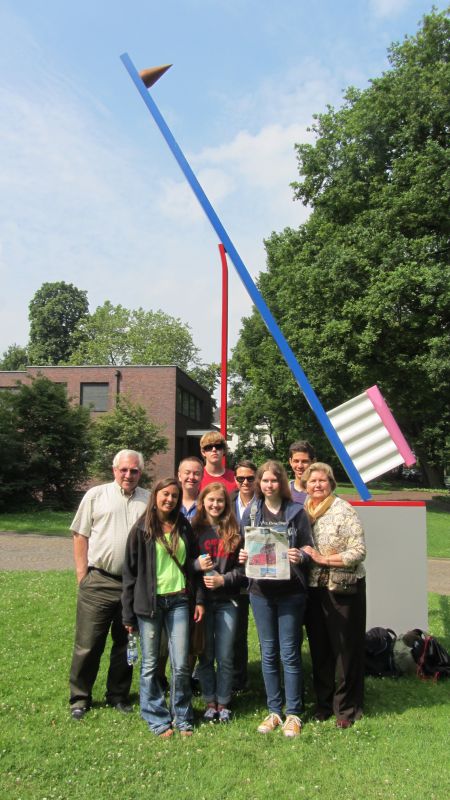 Corrie, Valerie, Alyssa, Matt, Carson, Austin, Andrew, Lorraine and Harry are guests from Charlotte, NC Krefeld's sister city. They are hosted by 7 students from GaM and two teachers. They touched down after a flight from Atlanta, Georgia on June 12. The Moltke hosts had been at Marvin Ridge High School in Waxhaw near Charlotte in April. The hosts have prepared a full program for their Americans: Reception at school, Linn Castle visit, Siempelkamp tour, museums, and lots of shopping. Last weekend was spent in Paris and tours of Cologne, Düsseldorf and Bonn have given students much to write home about. The guests and their hosts have been able to watch the many soccer games on tv and to celebrate with the German fans. This weekend GaM will have their graduation and a party in the evening. On Monday the group will have a reception with the mayor and then board the train to Munich. They will spend three days in the Bavarian capital and see of course the famous castle Neuschwanstein. We hope that the students have enjoyed their stay in Krefeld and wish them a safe and happy return to the USA.