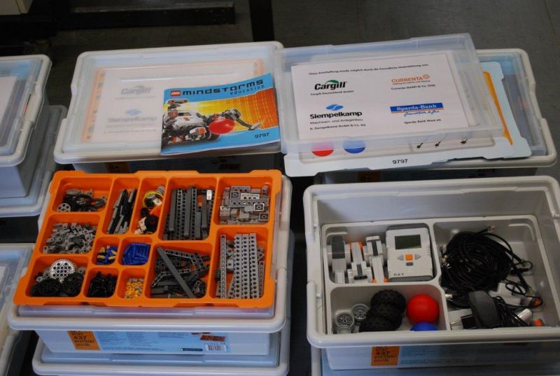 Die Fachschaften Informatik und Physik des Gymnasiums am Moltkeplatz bedankten sich am Freitagnachmittag für eine großzügige Spende der Krefelder Unternehmen Cargill, Currenta, Sparda Bank und Siempelkamp. Diese ermöglichte die Anschaffung von 12 Bausätzen zum Bau und zur Steuerung von Robotern aus dem Mindstorms Education System. Eingeweihte Kenner selbst an Fachhochschulen schätzen die Lego NXT-Software zur Steuerung von Robotern sehr. Die Roboter erkennen zum Beispiel durch einen Ultraschallsensor Hindernisse und weichen diesem nach einem eingegebenen Programm aus. Die Mitglieder des Informatikkurses waren begeistert und können sich nun vorstellen, wie viel Entwicklungsarbeit nötig ist, ein computergesteuertes Auto zu entwickeln. Die anwesenden Sponsoren freuten sich über das Engagement der Lehrer und teilten die Begeisterung der Schülerinnen und Schüler.