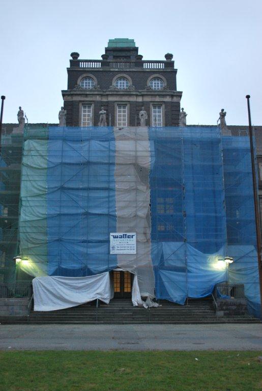 Einen ungewohnten Anblick bietet unser Portal zur Zeit. Schäden am Portikus machten eine Reparatur nötig, zudem werden die Säulen sandstrahlgereinigt. Schon bald wird unsere Front wieder im neuen alten Glanz erstrahlen. Wenn das kein gutes Omen ist ...