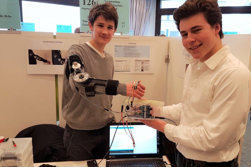 Mit ihrer Arbeit „Teil-Exoskelett für die Reha“ wurden sie als bestes interdisziplinäres Projekt ausgezeichnet und dürfen nun zum Landeswettbewerb Jugend forscht vom 3. bis 5. April nach Leverkusen fahren. Außerdem erhielten sie für ihre innovative Arbeit den Sonderpreis der Hochschule Rhein-Waal. Herzlichen Glückwunsch!
