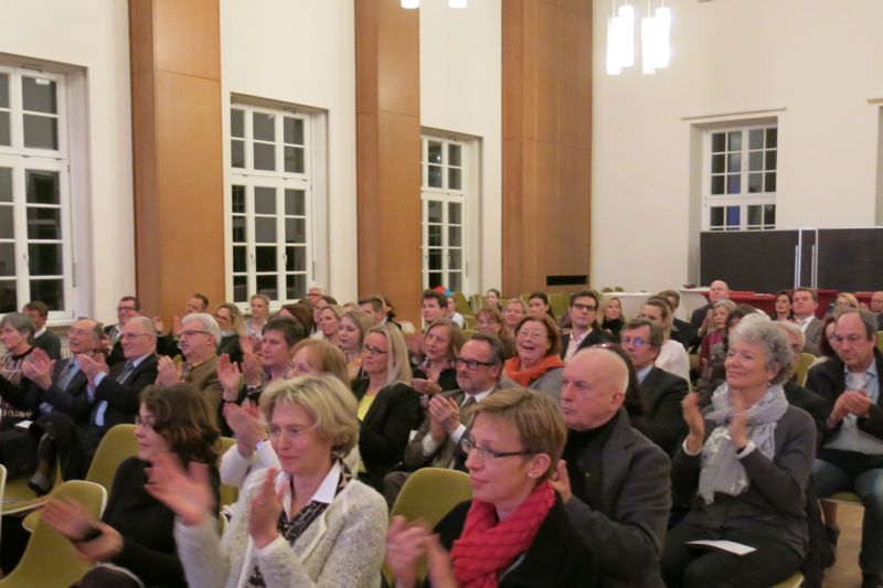 Mit einem bunten Programm startete das Gymnasium am Moltkeplatz am vergangenen Dienstag (20.01.) in das Jahr 2015. In Reden und musikalischen Beiträgen wurde die Zeitspanne 1915-2015 in unterschiedlicher Weise thematisiert. Zu Gast waren u.a. der Vorsitzende der Krefelder Baudenkmal-Stiftung Klaus Reymann, der interessante baugeschichtliche Aspekte zu unserem Schulgebäude vortrug, und unser ehemaliger Schüler und mittlerweile international bekannte Pianist Michael van Krücker, der mit der Cellistin Julia Polziehn ein grandiose musikalische Einstimmung auf das Jahr 1915 präsentierte. Bemerkenswerte Leistungen zeigten auch die Schülerinnen und Schüler des Profilkurses „Musik/Streicher“ und die „Modo-Girls“ des Projektkurses Musik der Klasse 6. In einer umfangreichen Rede dankte die Schulleitung Lehrern, Eltern, Schülern und vielen anderen Personen und Institutionen für ihren Einsatz am Gymnasium am Moltkeplatz im vergangenen Jahr. Das Publikum – unter ihnen viele ehemalige Kolleginnen und Kollegen – war von allen Beiträgen begeistert, spendete reichhaltigen Applaus und freute sich über anregende Gespräche beim anschließenden Sektempfang.