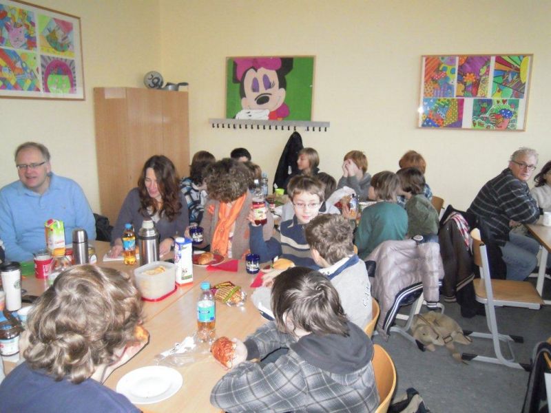 Die besten Neujahrgrüße übermittelte die Klasse 6c allen Beteiligten „unserer“ Moltke-Familie, und dies von ihrem obligatorischen Neujahrsfrühstück am Samstagmorgen, dem 14.1.2012, aus, wo man sich im Klassenraum zu einem gemütlichen, knapp zweistündigen Beisammensein, zusammen mit dem Klassenlehrer, Herrn van Randenborgh, einfand. Die Stimmung war bestens und optimistisch, nicht zuletzt, was das schulische Vorwärtskommen anbelangt. Überdies blickte sogar die Sonne ins Klassenzimmer, und so war man sich einig: So ließ sich das Neue Jahr gut an und könnte auch so weitergehen, selbstverständlich ebenfalls für alle anderen Moltkeaner/-innen. Deshalb auf diesem Wege: Der Schulgemeinschaft seien ausschließlich Glück, Gesundheit und der wichtige schulische Erfolg gewünscht!