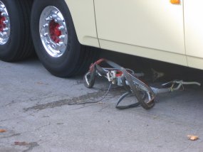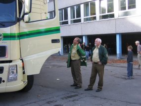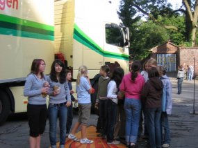 Die Bilder wurden während der Teilnahme der 6b gemacht. Das Plattfahren des Fahrrads aus den 60er Jahren durch den 40 Tonner dürfte besonders eindrucksvoll gewesen sein.