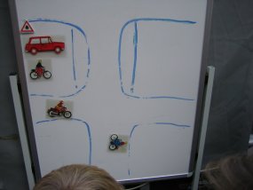 An den beiden Aktionstagen selbst standen zwei riesige LKWs auf dem Schulhof und die Kinder bekamen sehr anschaulich einen Einblick in das Thema "Toter Winkel" besonders aus der Sicht des Fahrers, der heute allerdings durch Zusatzspiegel wesentlich mehr sehen kann als früher. Zusätzlich frischte die Polizei in einem Quiz Fahrrad-Verkehrskenntnisse auf. Unsere Schüler schnitten wieder einmal überdurchschnittlich gut ab.