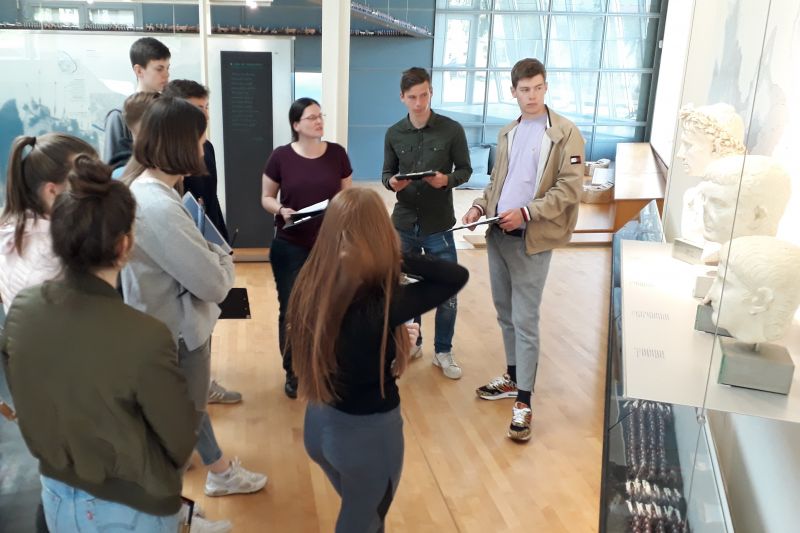 Bei strahlendem Sonnenschein besuchten die Lateinkurse der Jahrgangsstufe 8 unter der Leitung von Frau Dr. Verwiebe und Herrn Dr. Ginzel sowie der Grundkurs Latein der Q1 von Frau Dr. Verwiebe am 30.04.2019 das Römermuseum Haltern am See, unweit der Lippe (lat. Lupia). Hier befand sich in augusteischer Zeit ein römisches Logistikzentrum, das Nahrungsmittel und Hilfstruppen für die in Germanien vorrückenden römischen Legionen zu Verfügung stellte. Während unsere „kleinen“ Lateiner eine erkenntnisreiche und spannende Führung durch das Museum erlebten, bei der Soldatenalltag nachempfunden und erlebt werden konnte (z. B. beim Mahlen der täglichen Getreideration für die Zubereitung der puls, beim Tragen des Schilds zur Abwehr germanischer Speere etc.), erschlossen die Schülerinnen und Schüler des Grundkurses Latein eigenständig den römischen Heeresalltag mithilfe von archäologischen und literarischen Quellen. Beide Führungsformate boten vielfältige Möglichkeiten, über römische Interessen und Probleme in Germanien nachzudenken. Ein Picknick vor einer wirklichkeitsgetreuen Rekonstruktion des West-Tores des ursprünglichen Hauptlagers rundete diese nachhaltige Exkursion in den Kreis Recklinghausen ab.
