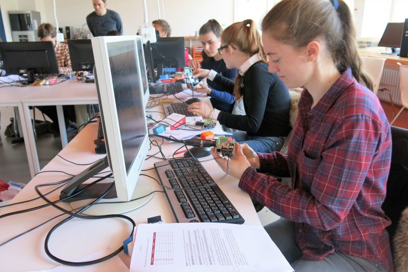 Für die meisten Teilnehmenden des Workshops ist dies die erste Erfahrung in Sachen Informatik. Alle schaffen es, die kleine Lampe an ihrem Raspberry Pi zum Leuchten zu bringen. „Ich habe vorher noch nie etwas in Richtung Informatik gemacht, daher finde ich es toll, dass wir ein Experiment durchgeführt haben, bei dem man direkt zu einem konkreten Ergebnis kommt“, sagt Schülerin Antonia Ziesse. Die Gruppe besteht hauptsächlich aus Mädchen. Der Kurs wird vom zdi-Zentrum KReMINTec in Krefeld unterstützt, dessen Ziel es ist, mehr junge Frauen für einen MINT-Studiengang (Mathematik, Informatik, Naturwissenschaften, Technik) zu begeistern. Vielen Mädchen sind die beruflichen Inhalte in den MINT-Berufsfeldern zu wenig bekannt. Ihnen ist es jedoch häufig wichtig zu wissen, was hinter der Technik steckt und was sie konkret mit einer Fachrichtung beruflich anfangen können. „Ich interessiere mich für ein Medizinstudium, finde aber auch Medizintechnik sehr spannend. Daher freue ich mich, dass ich mir Medizintechnik an der Hochschule einmal anschauen kann“, begründet Schülerin Jannika Dönges ihre Wahl des Projektkurses.