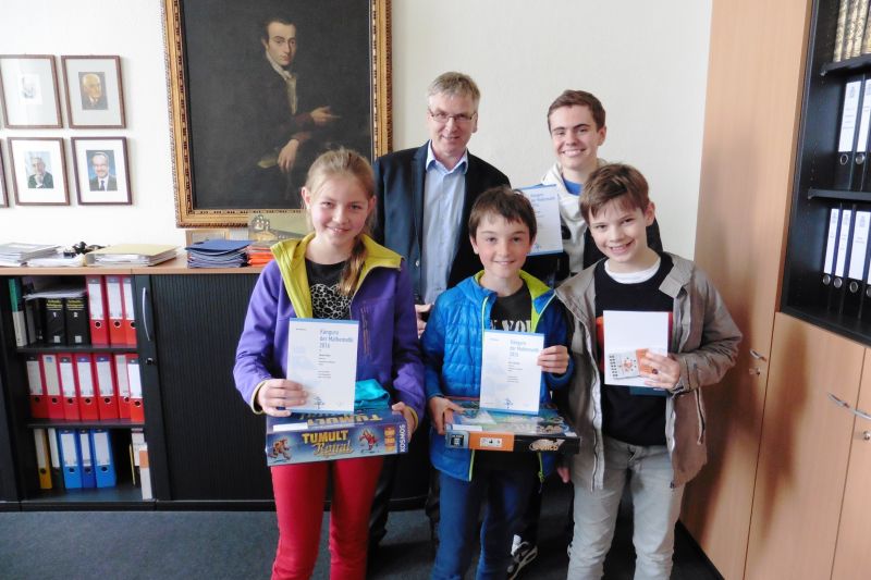 Insgesamt 92 Schülerinnen und Schüler fast aller Jahrgangsstufen unserer Schule haben in diesem Jahr am Känguru-Wettbewerb teilgenommen. Für besonders gute Leistungen, d. h. beim Erreichen einer Mindestpunktzahl, gab es 1., 2. und 3. Preise. Für den längsten Kängurusprung (d. h. die meisten hintereinander korrekt gelösten Aufgaben) wurde ein Sonderpreis vergeben.