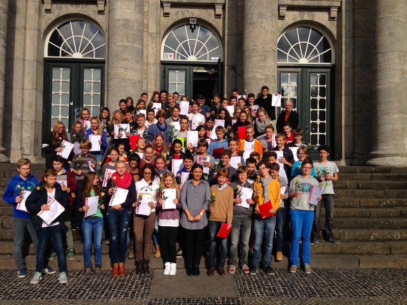 Am vergangenen Donnerstag, den 10.10.2014, übergaben Frau Akdas und Herr Diercks, Leiter des Jugend-Rotkreuz Krefeld, uns unsere Urkunden mit je einer Rose. Wir bedanken uns dafür ganz herzlich bei Frau Akdas und dem Deutschen Roten Kreuz!