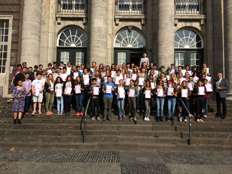 Am Dienstag, den 16.09.14, fand der Projektabschluss in der Aula statt. Frau Muck, Bildungsreferentin des Deutschen Roten Kreuzes, Herr Dr. Rademacher, Frau Akdas und Herr Möllecken überreichten den Schülerinnen und Schülern ihre Teilnahme-Urkunden gemeinsam mit einer Rose und viel Lob!