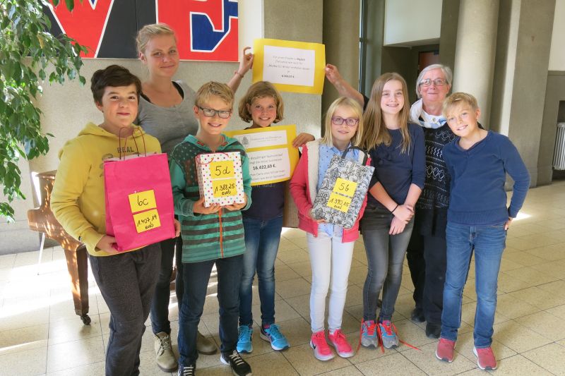 Von der Gesamtsumme fließen je 40 % in die beiden von der Schule unterstützten afrikanischen Projekte, jeweils stolze 6.569,08 €. Die Fachschaft Religion konnte am letzten Donnerstag vor den Herbstferien zwei Vertreterinnen des Mgibili-Kinderdorf-Vereins dafür gewinnen, die Arbeit des tansanischen AIDS-Waisen-Kinderdorfes mittels eines aktuellen Filmes und eigener, lebendiger Erfahrungen vorzustellen. Die Schüler und Schülerinnen des 5. bis 7. Jahrganges fragten die junge, äußerst geduldige Praktikantin Louisa Terstegen Löcher in den Bauch und konnten sich - fast nebenbei - ein Bild davon machen, wohin ihr Geld geht und wie überzeugend es verwandt wird.