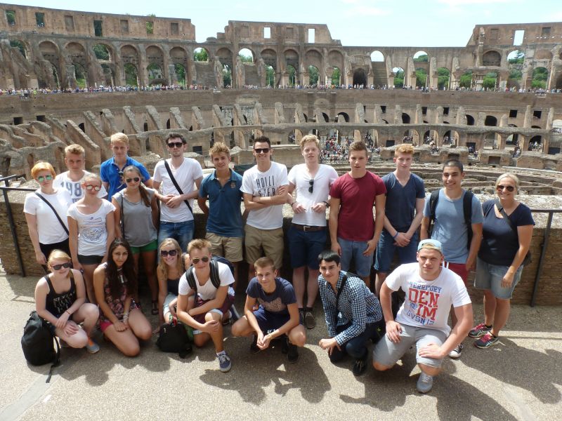 Am 23. August war es endlich soweit! Der Geschichts-LK von Frau Hohagen brach gemeinsam mit dem Mathe-LK von Herrn Pyschik per Flugzeug nach Rom auf. Die Vorfreude auf viel Sonne und eine wunderschöne Stadt bestätigte sich sofort nach der Ankunft in Rom. Mit kurzer Hose und T-Shirt genossen die Schüler, Schülerinnen und Lehrer in Kleingruppen den ersten Abend in Rom.
