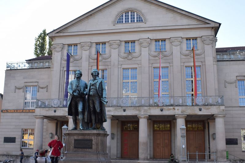 Am Sonntag den 2. Oktober 2016 haben sich die beiden Leistungskurse Deutsch sowie der Leistungskurs Mathematik am Krefelder Zoo um 7 Uhr zur Abfahrt nach Weimar getroffen. Begleitet wurde unsere 50 Personen starke Gruppe von den Lehrern und Lehrerrinnen Herr Nimmerjahn, Herr Krüger, Frau Akdas und Frau Heimes. Diese Kursfahrt widmete sich vor allem der Erkundung der biographischen Hintergründe der deutschen Schriftsteller Johann Wolfgang von Goethe, Friedrich Schiller und den in Prag geborenen Franz Kafka. Die Busfahrt bis nach Weimar war ziemlich ruhig, da alle noch müde waren und die meisten es wenigstens versuchten noch ein paar Stunden Schlaf nachzuholen.