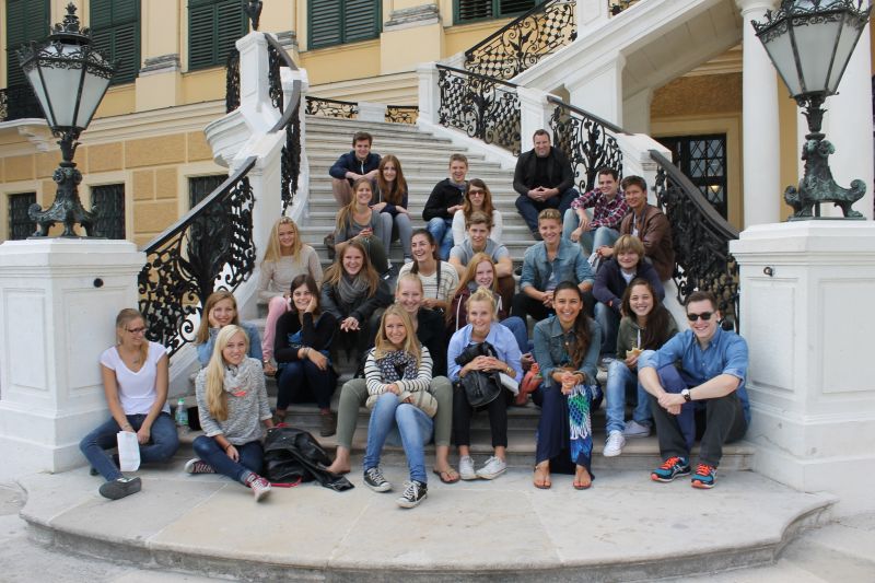 Der Deutsch-Leistungskurs, der sich am Freitag, den 7. September 2013, zusammen mit Frau Akdas und Herrn Möllecken vom Düsseldorfer Flughafen aus auf den Weg nach Österreich machte, wird sich, was das Kulturprogramm angeht, nicht beschweren. Was das Essen angeht, sicher auch nicht. Gleich am ersten Tag gab es einen Rundgang durch die Innenstadt, und in den darauffolgenden sechs Tagen unter anderem eine Führung durch die Wiener Oper, die Wiener Altstadt, die Besichtigung von Schloss Schönbrunn und mehrerer Kirchen, beispielsweise der im Wiener Jugendstil erbauten Otto-Wagner-Kirche, und einen Besuch einer Aufführung im Burgtheater. Beeindruckend war zudem das Gespräch mit dem Leiter des Burgtheaters, Matthias Hartmann, und das nicht nur deshalb, weil er selbst nicht wusste, wie wir zu dem Termin für ein Gespräch gekommen waren. Obwohl unser Kurslehrer Herr van Randenborgh, dem wir die Planung unserer Fahrt verdanken, leider nicht mitkommen konnte, war es eine rundum gelungene Kursfahrt! Wir nehmen viele tolle und unvergessliche Eindrücke mit und werden Wien sicherlich nicht das letzte Mal besucht haben.