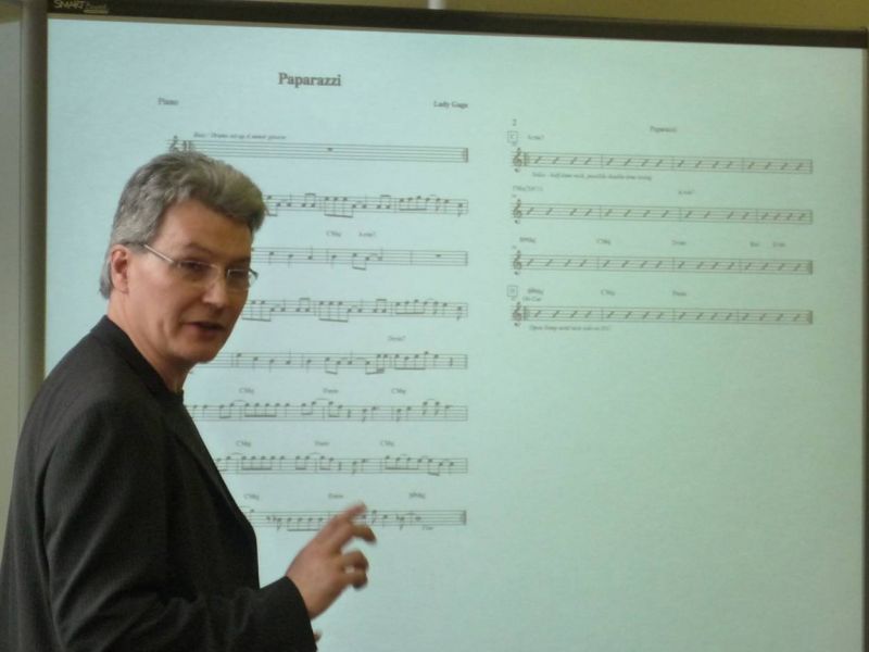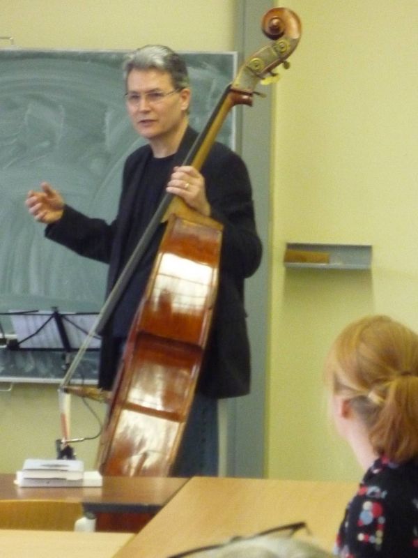 Goldsby, Duncan und Tiemann berichteten den 22 LK-Schülern von ihren persönlichen Erfahrungen, z.B. vom Werdegang eines Jazzmusikers oder wie man als Jazzmusiker seinen Lebensunterhalt verdient. Auch über die Geschichte des Jazz erzählten sie und über den Einfluss des Jazz auf andere Musikformen, wie Popmusik, Hip-Hop und Soul.