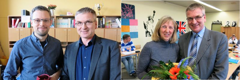Ebenfalls verabschieden mussten wir Herrn Florian Hollmann, der ab dem 4.2.2017 an das Gymnasium Knechtsteden wechselt. Herr Hollmann hatte bereits sein Referendariat am Gymnasium am Moltkeplatz absolviert und hat dann im Anschluss die Elternzeitvertretung für Frau Vallée übernommen. Herrn Hollmann verdankt die Schule neben seiner Unterrichtstätigkeit eine hochengagierte Arbeit im Bereich von Theater, Bühnentechnik und Gottesdienstgestaltung. Wir wünsche ihm für seine berufliche Zukunft viel Erfolg.