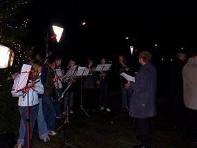 Am 03.12.2002 versetzten wir unter Mitwirkung desSchüler-Lehrer-Eltern-Chores und Mitgliedern des Schulorchesters den Bismarckplatz mit einem "Offenen Singen" in Weihnachtsstimmung.