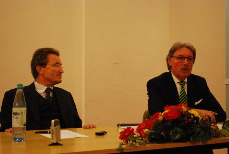 Wolfgang Huber, seines Zeichens langjähriger Vorsitzender der EKD und Bischof a. D., stattete unserer Schule am Mittwoch, dem 20.11.2013, dem ursprünglichen Buß- und Bettag, im Rahmen des 73. Moltke-Forums seinen Besuch ab. Thema seines Vortrags war die „Ethik des Zusammenlebens“, und wie von einem Kirchenmann nicht anders zu erwarten, schlug er hinsichtlich der Ausschmückung seines Themas versöhnliche, verbindende und Brücken bauende Worte an. Als erste Grundlage des Angewiesenseins auf die Gemeinschaft (= Ethik im engeren Sinne Hubers) nannte er, dass Gewalt gegen andere weder zulässig noch legitim sei. Man dürfe niemand verloren geben. Eine zweite Grundlage sei die, dass man zu den Dingen stehen müsse, die einem wichtig seien und von denen man überzeugt sei, dass sie stattfinden sollten. Ein dritter Eckpfeiler sei die „ethische Vernetzung“, den er auch „weltbürgerliches Ethos“ nannte; hier gehe es um das Einüben von Verantwortung, welches er am besten in den klassischen Bildungseinrichtungen verankert sieht. Seine übergreifende These lautete zum Schluss, dass der Mensch als unhintergehbares Beziehungswesen „Freiheit (zu) verantworten“ habe. Einem allseitigen Toleranzbegriff erteilte er allerdings eine so kaum erwartete Absage – Motto : „Wer nach allen Seiten offen ist, kann nicht dicht sein.“ Lang anhaltender Beifall für einen sprachlich geschliffenen Vortrag, dem zur Freude des Organisators 146 Zuhörer/-innen beiwohnten.